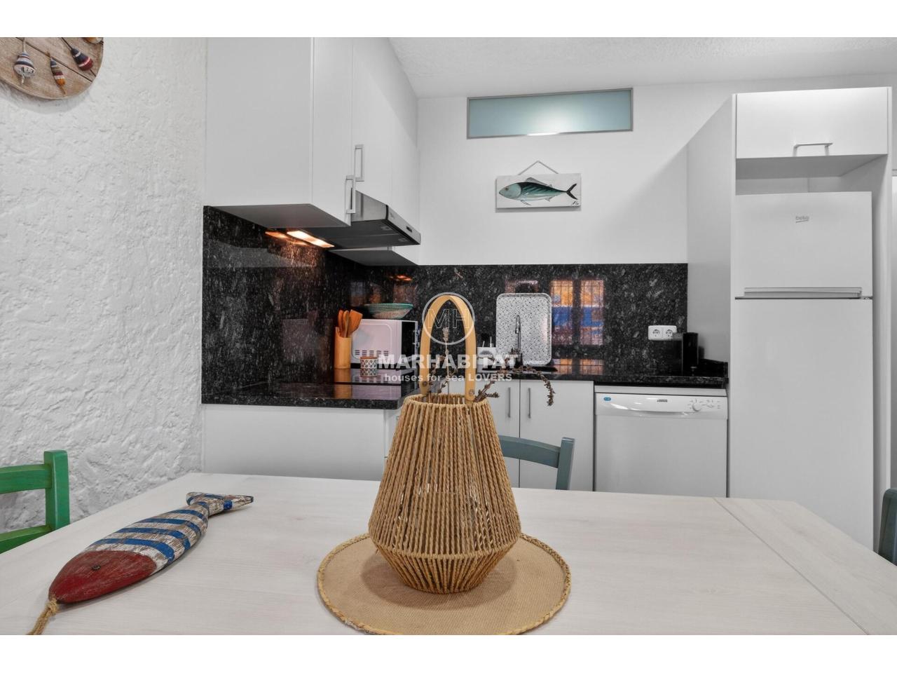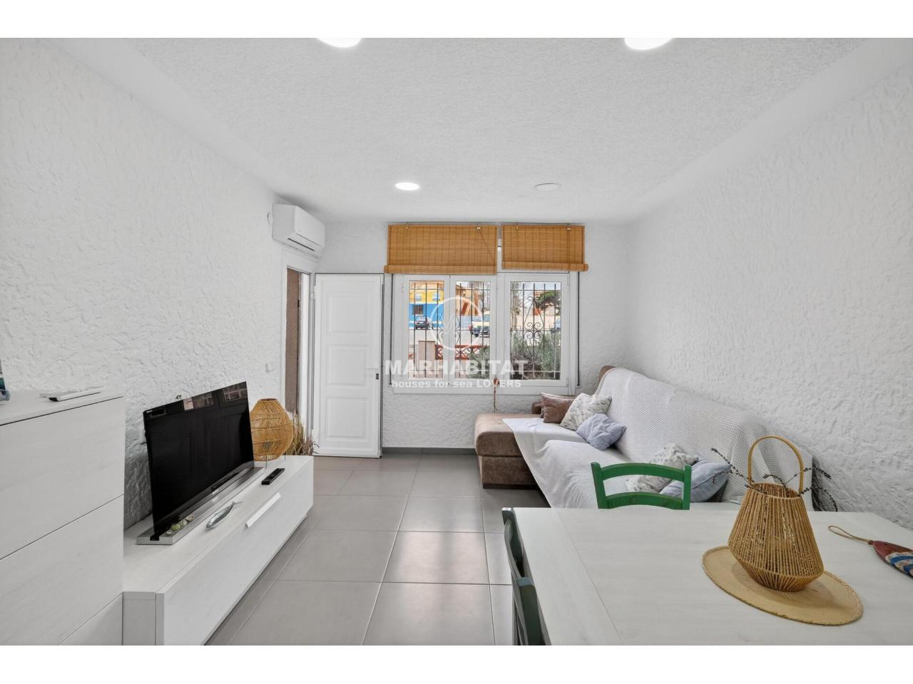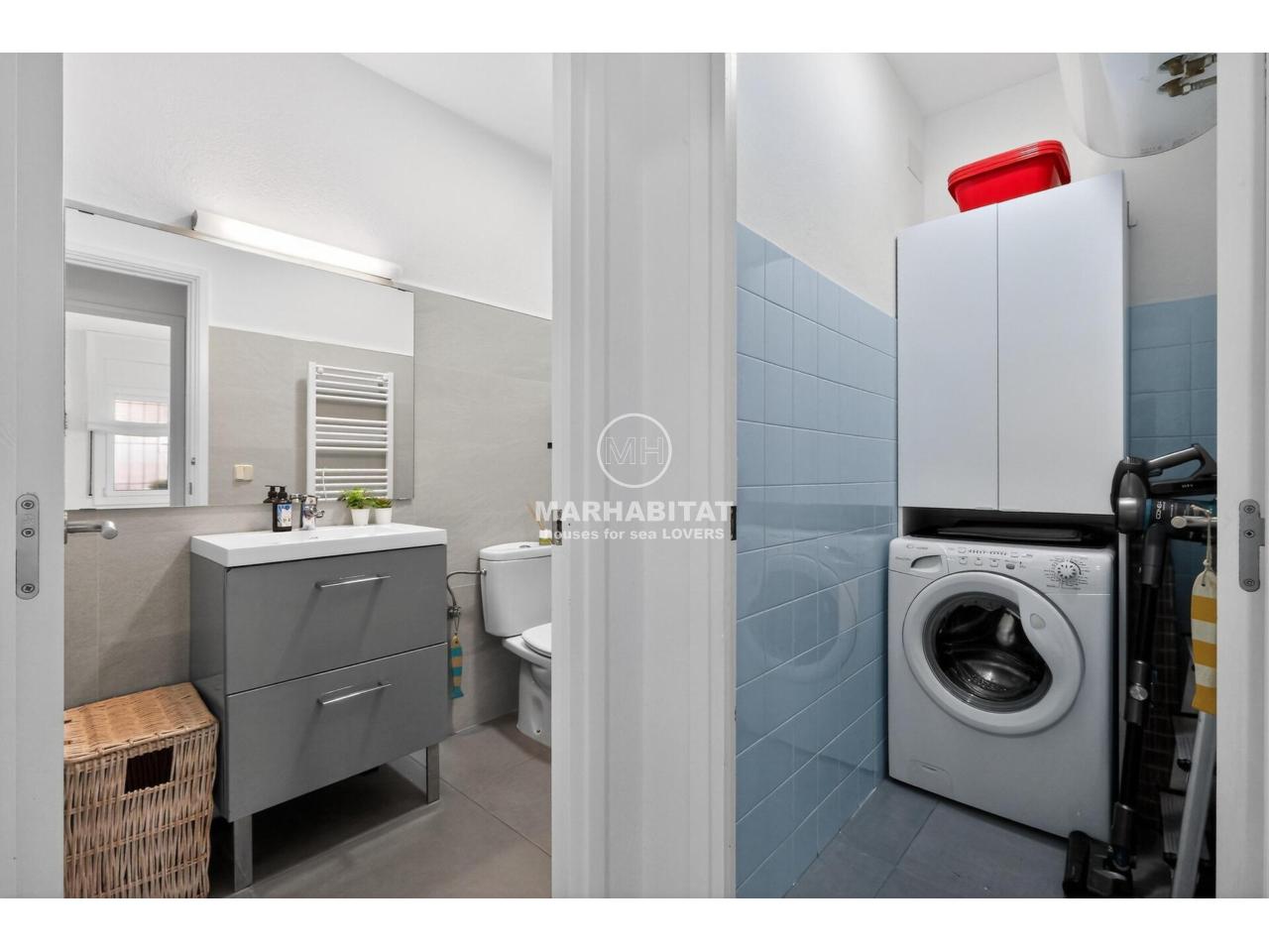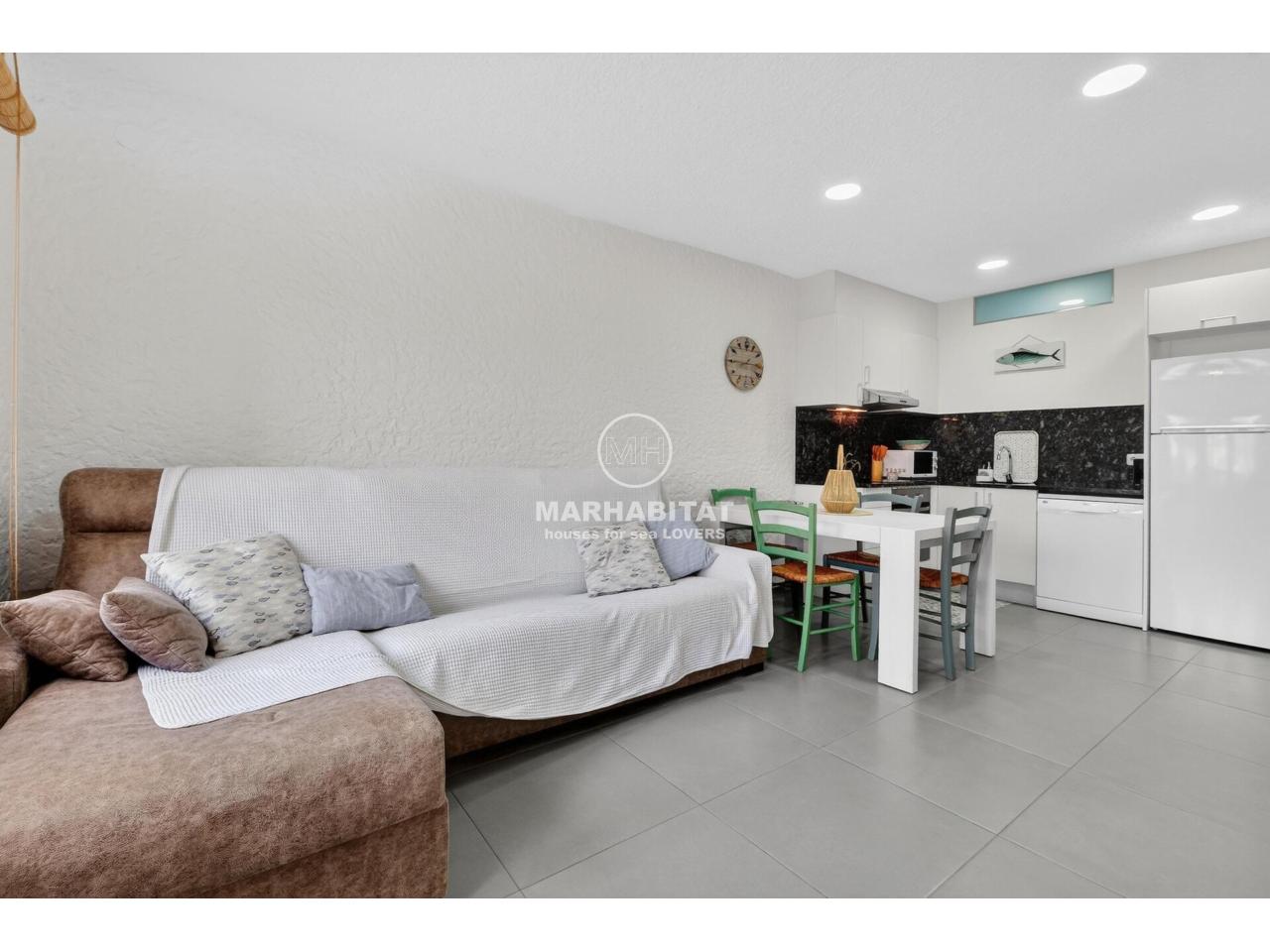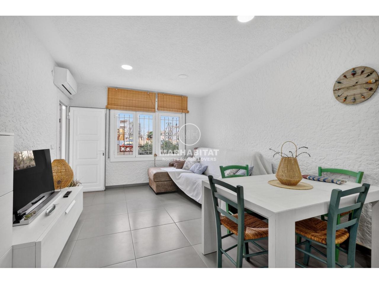 Aquest pis a planta baixa, situat en un petit edifici sense despeses comunitàries, ofereix precisament aquesta manera de viure còmoda i senzilla al costat del mar. L'habitatge ha estat renovat amb molt de gust i transmet una sensació acollidora des del primer moment. La cuina oberta s'integra amb el menjador-sala d'estar, creant un espai càlid i pràctic on compartir esmorzars tranquils o sopars després de la platja. L'habitació doble amb armaris encastats aporta ordre i comoditat, mentre que l'espai multifuncional, actualment utilitzat com a dormitori amb lliteres, permet adaptar-se fàcilment a diferents necessitats, ja sigui com a zona de convidats, despatx o racó personal. El bany amb dutxa manté la línia actual i funcional de tot l'habitatge i l’aire condicionat reversible garanteix confort durant tot l’any.