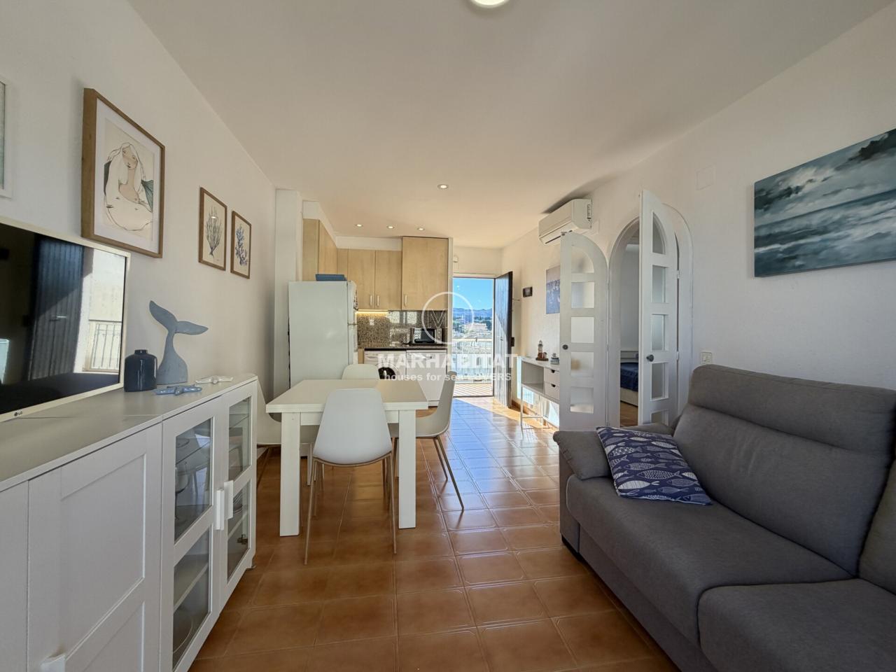 Des del quart i últim pis d’un edifici amb ascensor, la llum del Mediterrani omple cada racó d’aquest habitatge. L’espai de menjador amb cuina oberta i renovada convida a compartir moments relaxats, amb la brisa marina entrant suaument des de la terrassa. Les dues habitacions ofereixen espais de descans acollidors, i el bany amb dutxa i l’aire condicionat garanteixen confort en qualsevol època de l’any.