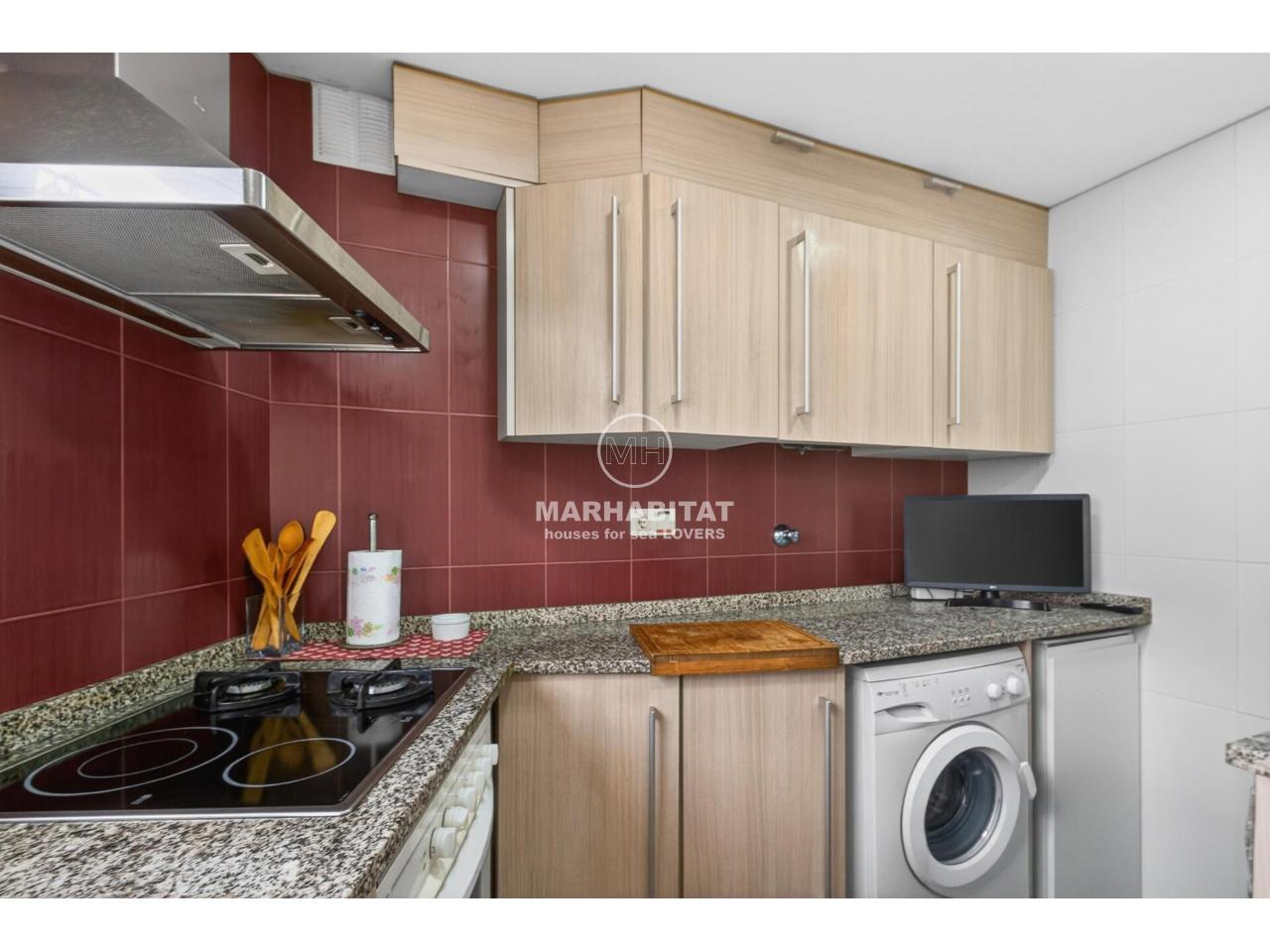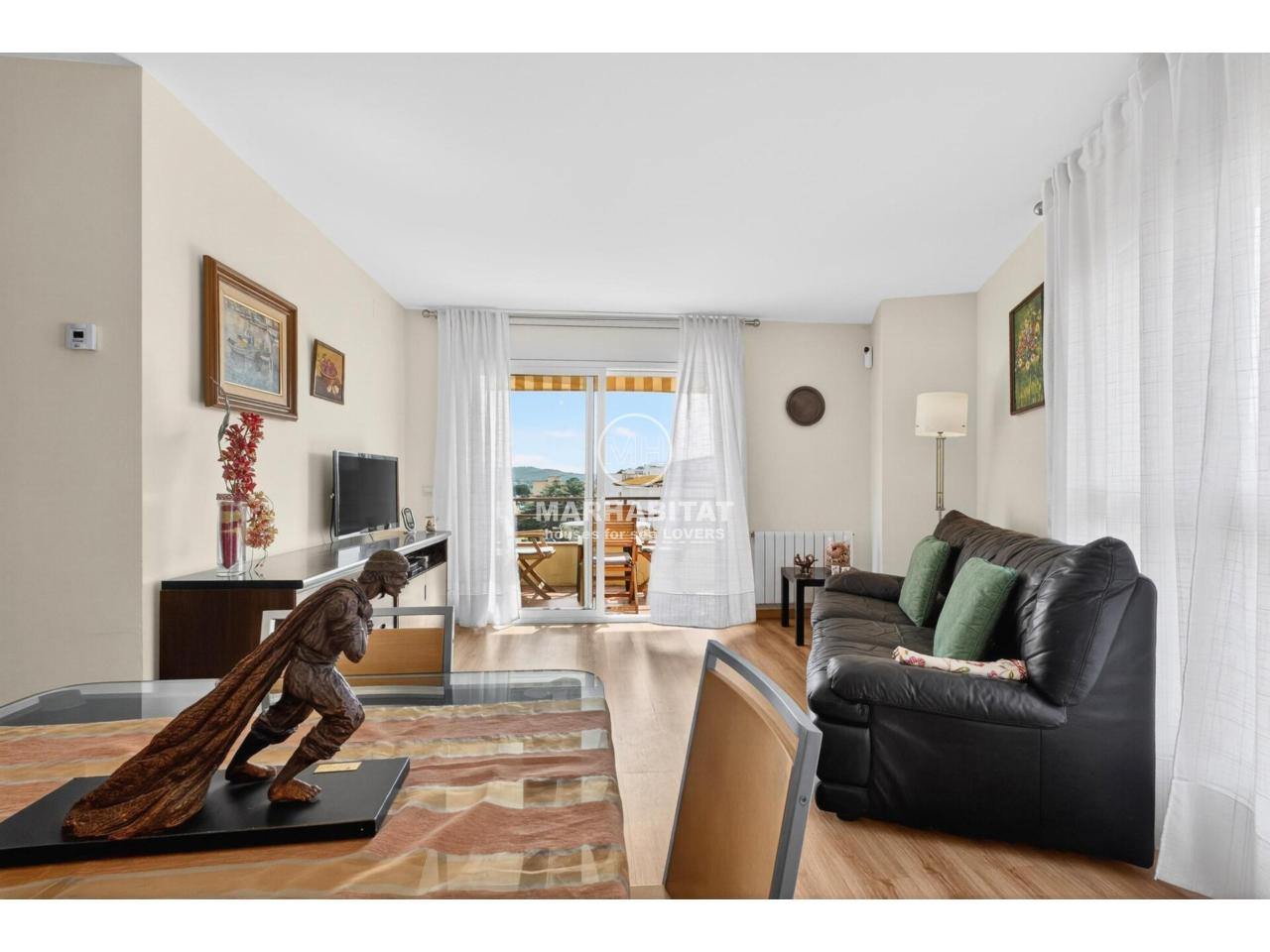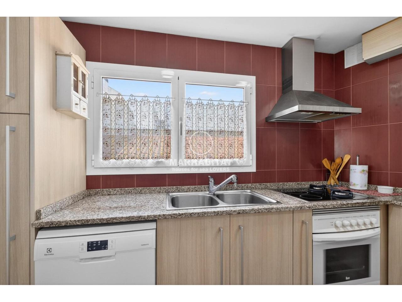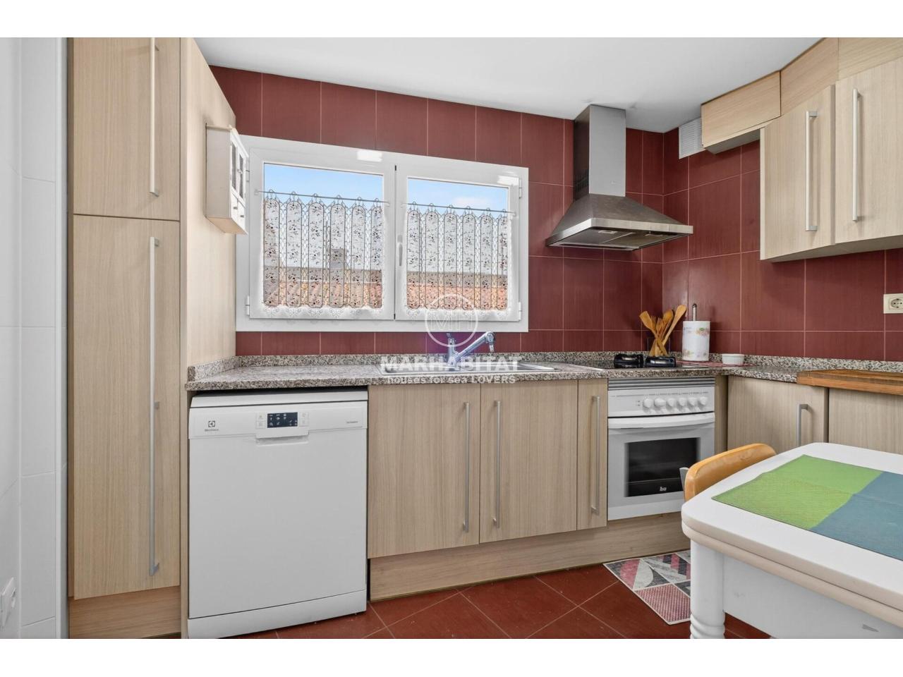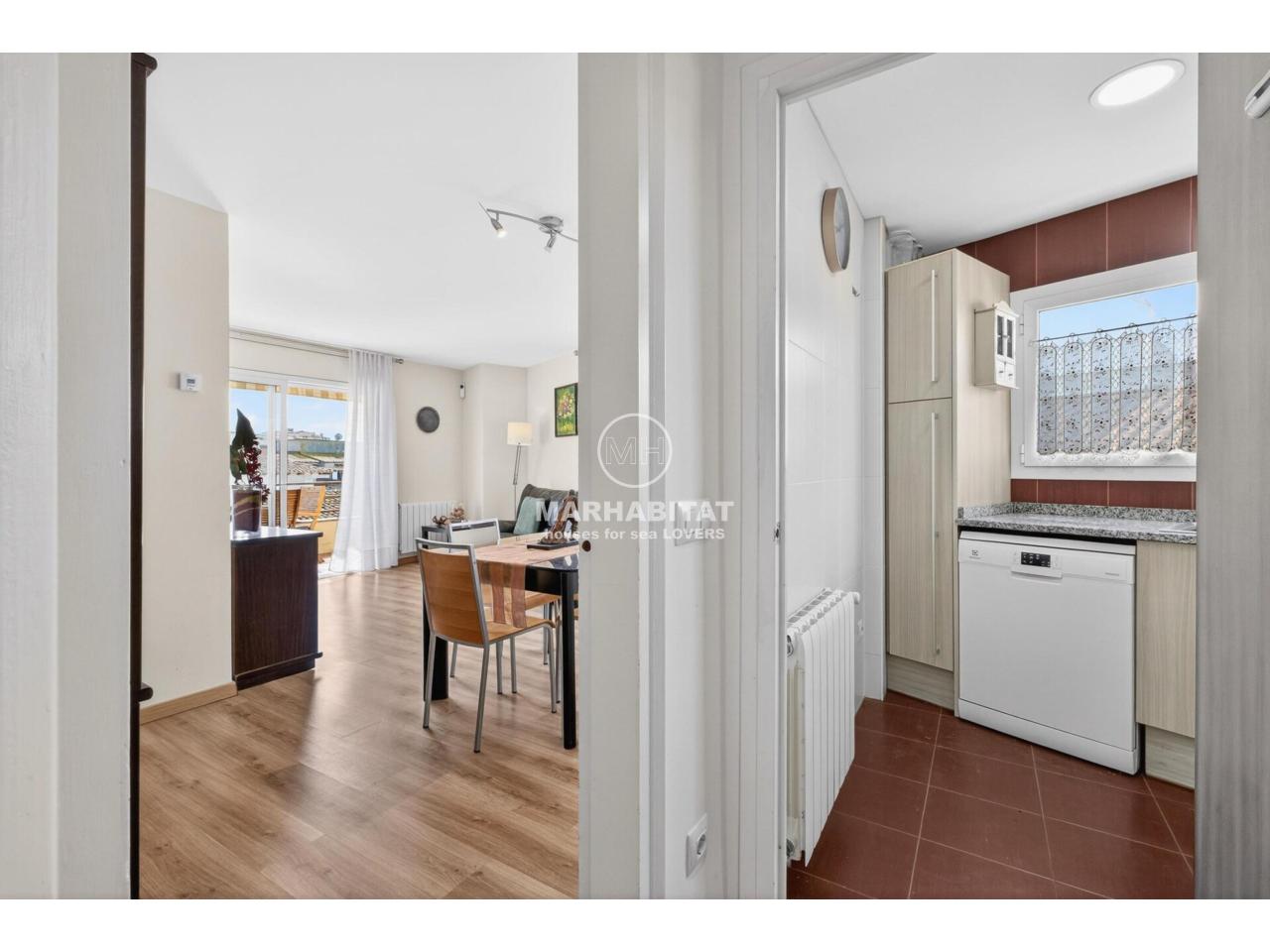 Aquest apartament cantoner, situat en una tercera planta amb ascensor, combina comoditat, llum natural i una ubicació privilegiada al cor de l’Escala. L’habitatge ha estat renovat i transmet una sensació agradable i acollidora des del primer moment. El menjador-sala d’estar, orientat al sud, és especialment lluminós i connecta amb una terrassa des d’on es pot gaudir d’unes vistes obertes al Parc Natural del Montgrí i d’una lleugera vista al mar, un espai ideal per esmorzar amb calma o relaxar-se al final del dia. La cuina és independent, pràctica i funcional, un espai còmode per al dia a dia que manté la seva pròpia zona diferenciada de la sala d’estar.