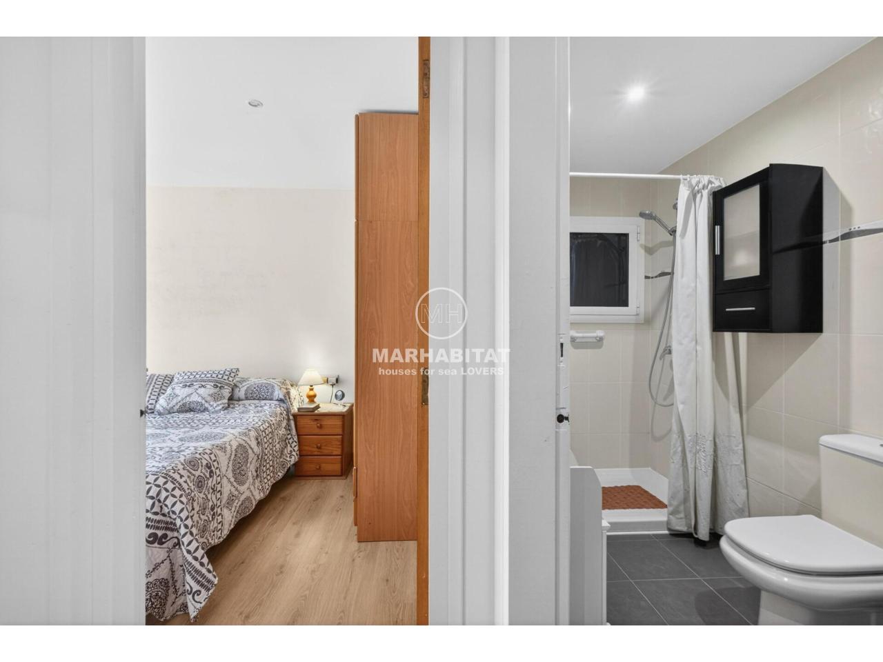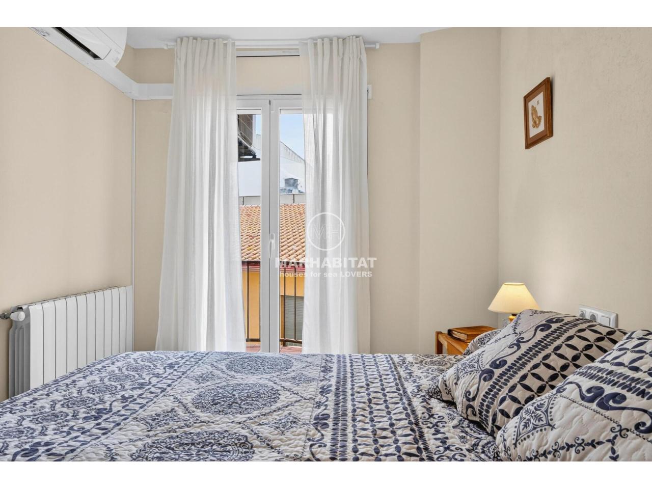 Hi ha llocs on el mar no és només una escapada, sinó part de la vida quotidiana. Imagina començar el matí amb la llum entrant pels finestrals orientats al sud, sortir a la terrassa i veure el blau del mar al fons mentre el poble es desperta tranquil·lament. Tot és a prop: el centre, els comerços, els cafès de sempre… i la Platja de les Barques a només 4 minuts caminant (300 m).