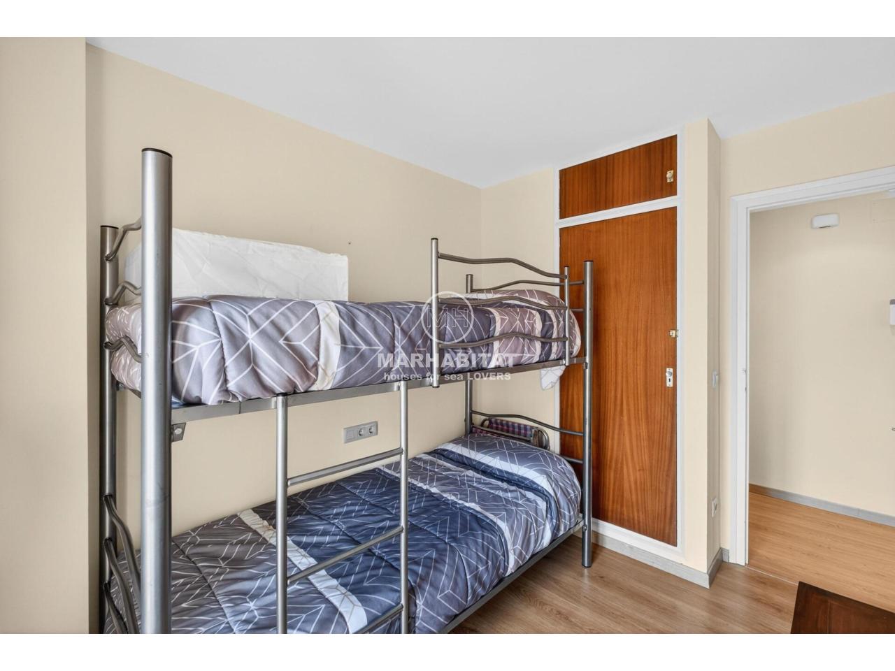 La zona de nit ofereix tres habitacions que permeten adaptar l’espai a diferents necessitats. Les dues habitacions dobles disposen de balcó propi amb vistes al mar, aportant una sensació d’amplitud i llum molt agradable. L’habitació individual pot funcionar perfectament com a dormitori, despatx o espai polivalent segons el moment de vida de cada propietari.